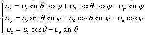 [球面坐标系与直角坐标系的互换] 由球面坐标系到直角坐标系的变换公式