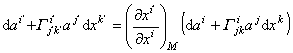 是一个逆变无穷小矢量.Dai为矢量在点M处关于分量为dxi的位移MN的绝对微分.如果联络对象,则绝对微分与普通微分一致.