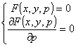 [p-判别曲线法]  对于一阶微分方程,令,那末方程的奇解一定包含在下面方程组