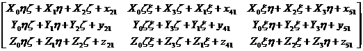 It can be seen from the above formula that the quadratic coefficients of each row of the transformation matrix about ξ , η , ζ are the same .